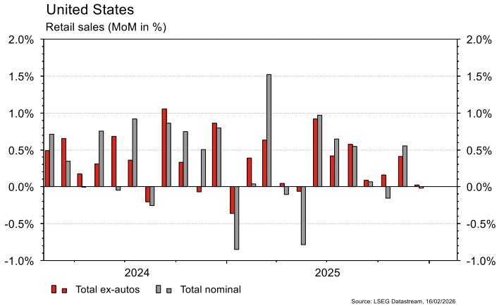 Statistics published in the United States were mixed. The slowdown in price growth from +2.7% to +2.4% y/y (vs +2.5% est.) in January was a pleasant surprise. Similarly, the number of jobs created in the same month (+130,000) far exceeded expectations (+65,000). However, revisions for 2025 were sharply negative (from +48,000/month to +15,000/month after revisions). The stagnation in retail sales in December (vs +0.4% m/m est.) was a disappointment, as was the decline in SME confidence (NFIB) in January (from 99.5 to 99.3 vs 99.8 est.). In the eurozone, investor confidence (Sentix) rose more than expected, from -1.8 to +4.2 (vs. 0 est.) in February. In China, the contraction in producer prices was less severe than expected in January (-1.4% y/y vs. -1.5% est.), but the rise in consumer prices (+0.2% y/y vs. +0.4% est.) was still too weak.
